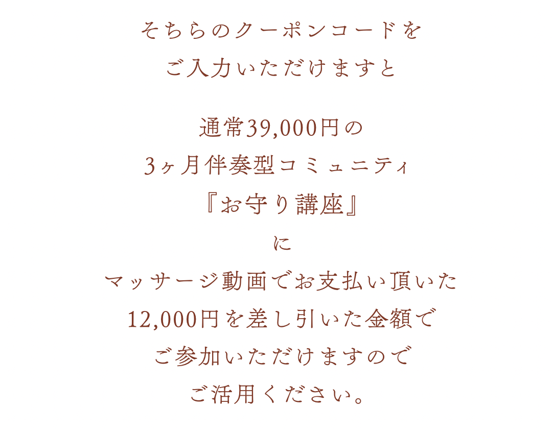 お守り講座で使用できるクーポンは小文字で yuruhagu33 です。